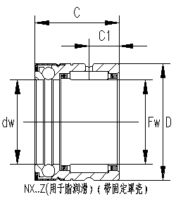 向心滾針軸承與密封式推力球軸承的組合,帶固定罩殼,用于中等軸向負荷(用于脂潤滑)