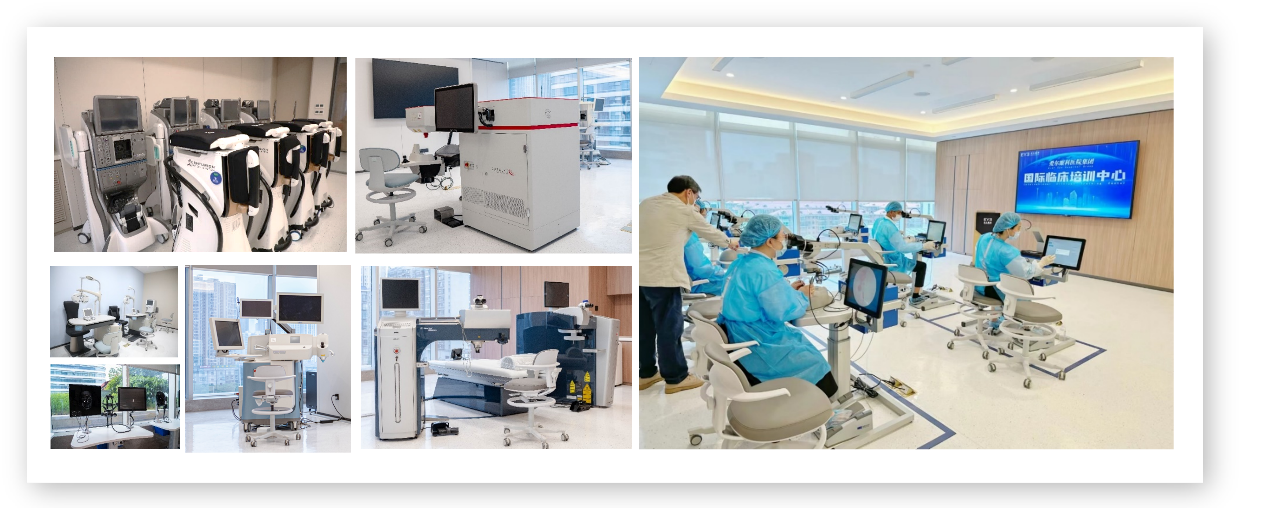 AICTC配備了VRmagic Eyesi白內(nèi)障&眼底手術(shù)模擬器、Eyesi檢眼鏡模擬器、WaveLight、VisuMax、MEL90、LenSx、Catalys、Constellation、Centurion、Legion、Angio-OCT、IOL-Master、PENTACAM等上百臺(tái)國(guó)際一流的眼科培訓(xùn)、檢查與手術(shù)設(shè)備。