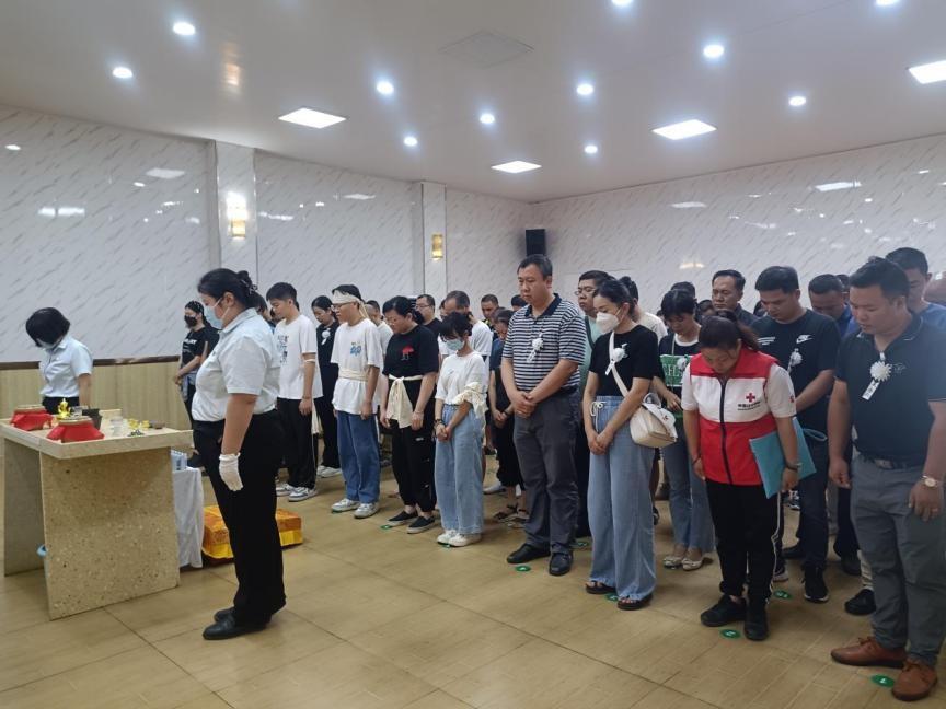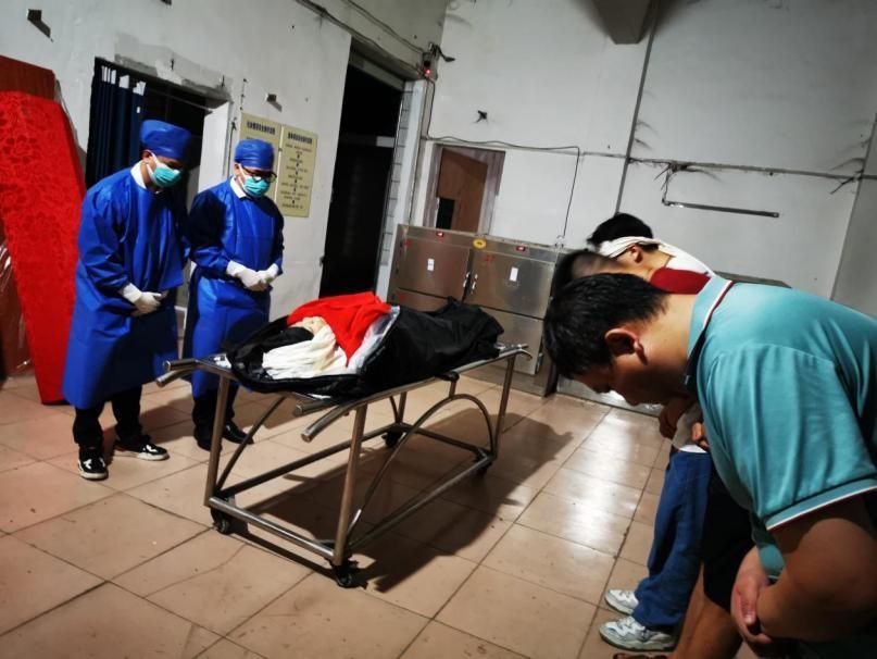 ▲紅十字會(huì)和醫(yī)護(hù)人員向何繼東遺體鞠躬