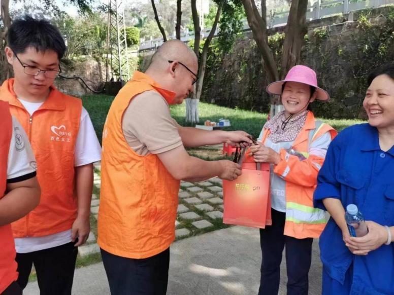 6月14日,何繼東帶領(lǐng)志愿者開(kāi)展慰問(wèn)城市園林工人活動(dòng);