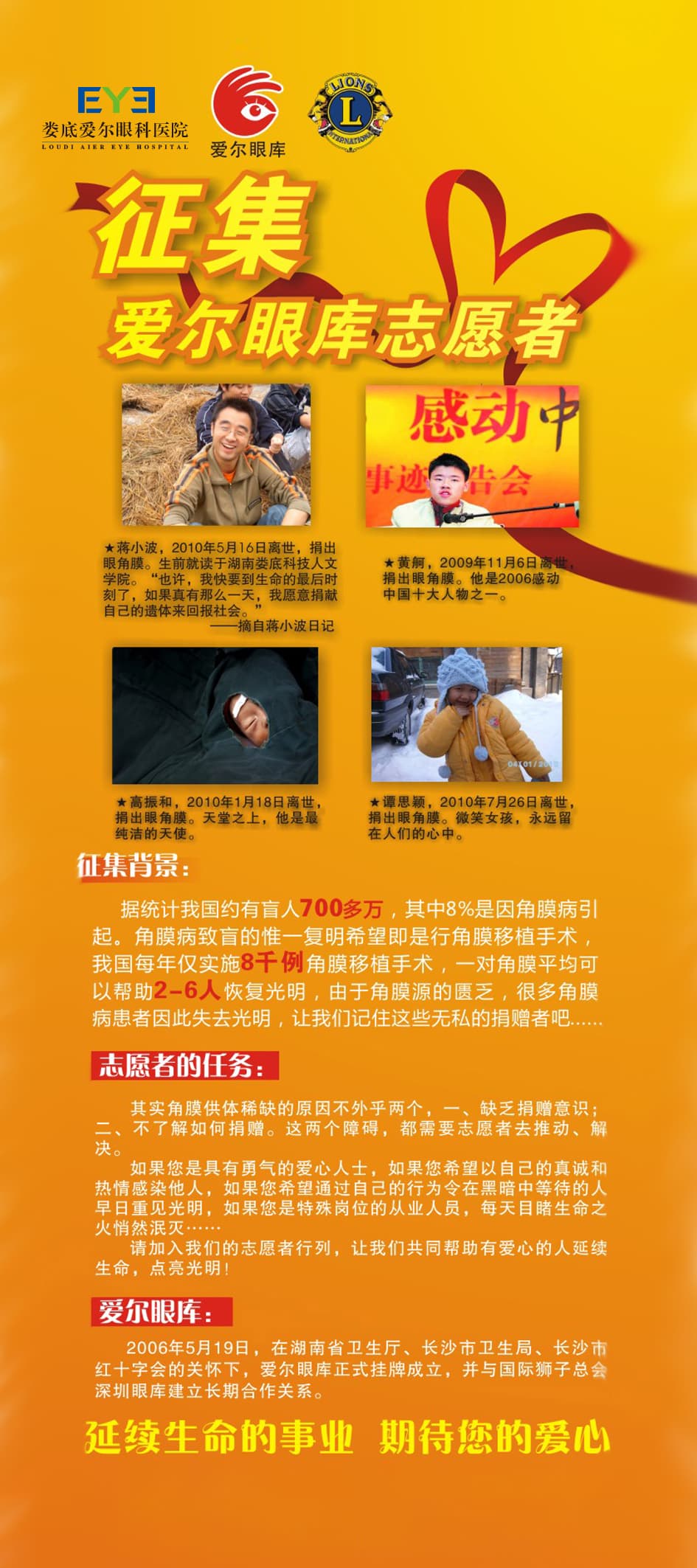 愛爾眼科醫(yī)院作為“婁底市紅十字遺體捐獻接收站”和“湖南省紅十字角膜捐獻愛爾眼科接收登記婁底分站”,將幫助實現(xiàn)志愿者捐獻遺體和角膜的愿望。