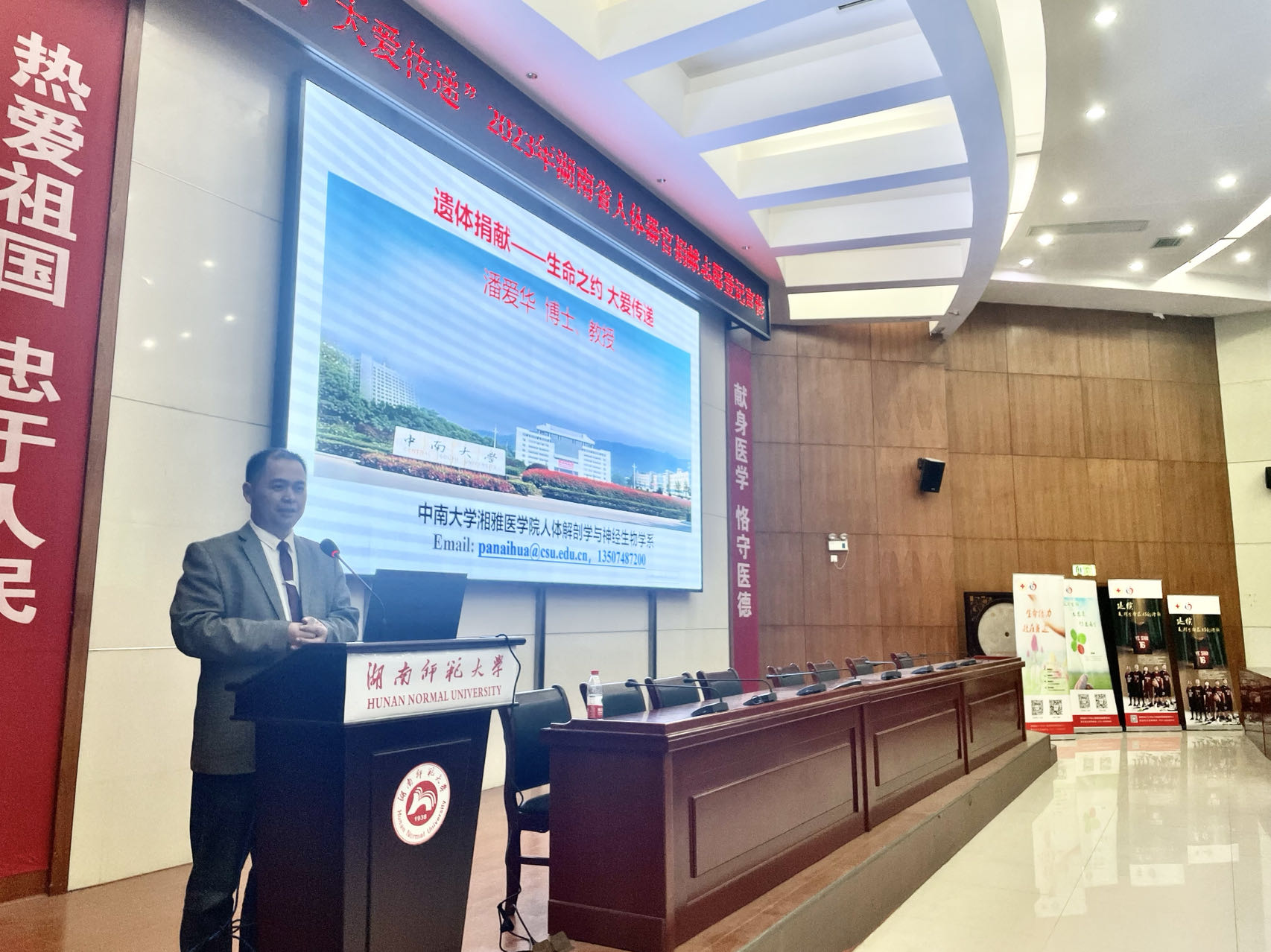 為進(jìn)一步推進(jìn)人體器官捐獻(xiàn)工作,弘揚(yáng)“人道、博愛、奉獻(xiàn)”的紅十字精神,普及器官捐獻(xiàn)知識,更好地守護(hù)人們的生命和健康,2023年12月7日,湖南省人體器官捐獻(xiàn)管理中心聯(lián)合中南大學(xué)湘雅醫(yī)學(xué)院、長沙愛爾眼科醫(yī)院專家教授,在湖南師范大學(xué)醫(yī)學(xué)院舉辦“生命之約、大愛傳遞”專題講座及器官捐獻(xiàn)報名登記宣傳活動。